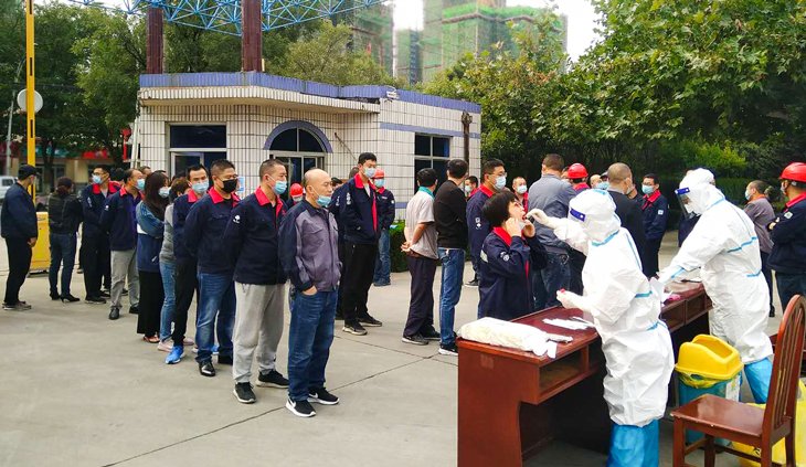 受青島疫情影響,為防止疫情擴(kuò)散傳播,2020年10月13日上午,宏泰接同和黨委通知,在公司臨時(shí)設(shè)立核酸檢測點(diǎn),為員工進(jìn)行核酸檢測。