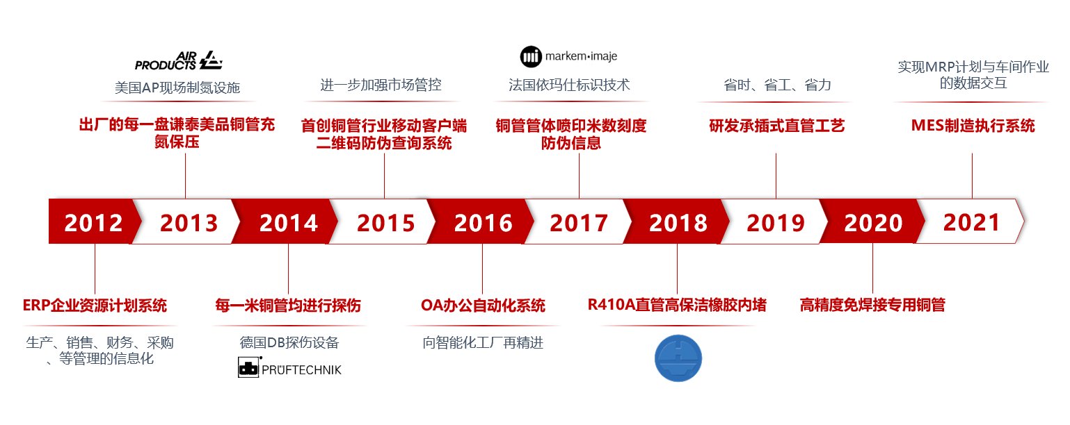 要在前有標兵、后有追兵漸進的形勢下保持強勁的發(fā)展勢頭,非要做好創(chuàng)新發(fā)展這塊大文章不可。三年的現代化管理,李福鵬不斷深化市場認識,強化決策管理,抓好過程控制,搶抓市場機遇,實施精益管理,優(yōu)化生產組織模式,使企業(yè)內部潛力不斷釋放,核心競爭力和抗風險能力不斷增強。為了更快速接觸市場和滿足客戶需求,他提出管理信息化、生產數字化、市場電商化、決策數據化的宏泰四化建設,在2010年引進先進的ERP企業(yè)管理系統(tǒng)的基礎上,2015年引進OA辦公自動化系統(tǒng),2020年開始在生產部全部推行MES系統(tǒng),2021年成立互聯網小組,2022年引入SCM供應鏈管理系統(tǒng),帶領宏泰人在四化建設的道路上不斷邁進,宏泰管理思維模式也不斷從粗放式管理到精細化管理轉變。要在前有標兵、后有追兵漸進的形勢下保持強勁的發(fā)展勢頭,非要做好創(chuàng)新發(fā)展這塊大文章不可。李福鵬以滿足市場客戶需求為關注焦點,通過產品研發(fā)創(chuàng)新,將宏泰銅管做成宏泰精品,做出謙泰美品。針對客戶安裝的痛點,創(chuàng)新出宏泰承插式直管,節(jié)省人工、焊料、紫銅管件,并減少泄露風險,迅速得到客戶的認可。